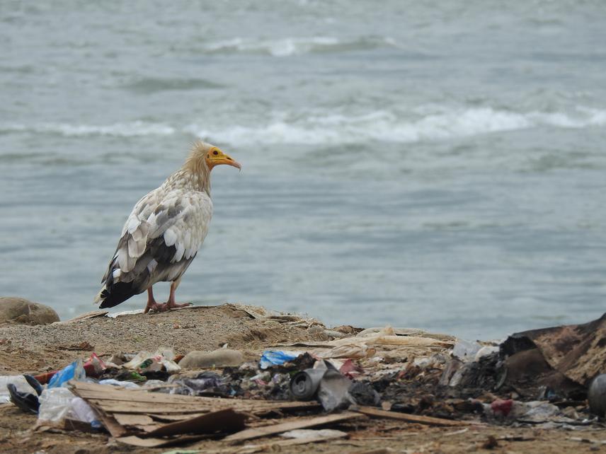 Egyptian Vulture adult in the garbage dumping site. ©Ankit Bilash Joshi | Bird Conservation Nepal.