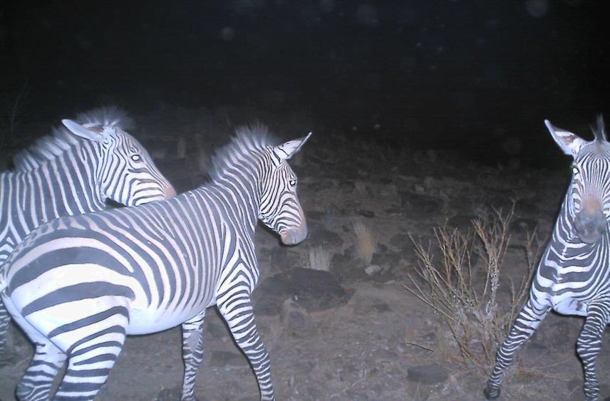 We are studying a newly protected population of Hartmann's mountain zebra population (E. z. hartmannae: IUCN Red List Category EN Endangered A1b) and their arid karoo habitat in Gondwana Cañon Park, a recently established 120,000 ha reserve in southern Namibia. This park is adjacent to Fish River Canyon National Park and zebra pass freely between the two areas. We will estimate population size using individual recognition and capture-mark-recapture techniques. Fortunately zebra each have unique stripe patterns and so individual records can be established and used for these demographic estimates. Some of these individual records are obtained from camera traps that we are using to estimate the numbers visiting different water sources and the movements and dynamics of social groups as they make use of different areas during wet and dry seasons.