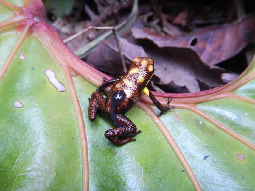 Andinobates tolimensis is a threatened Andean poison frog which is virtually unknown even though it was discovered in 2007. Although a private reserve was created for its conservation, it has rarely been observed and much of its biology, ecology, behaviour, natural history, and evolution are unknown. A possible population was recently found in the corregimiento of Padua in Herveo (Tolima, Colombia). However, its morphological characteristics have not allowed us to determine if it belongs to Andinobates tolimensis or Andinobates dorisswansonae. This project seeks to determine through phenotypic and genetic evidence the identity of the Andinobates population of Padua.