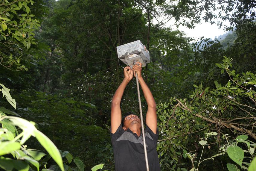 Acoustic sampling from forest, Mr. Bikash (Field assistant).